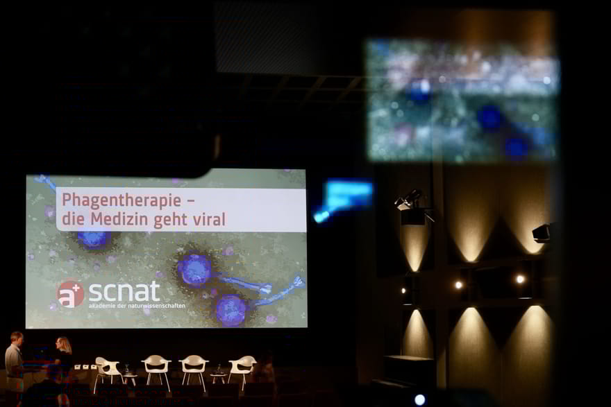 | | Für manche Menschen mit chronischen, schwer behandelbaren Infektionen könnte die Phagentherapie eine Option sein. Phagen sind Viren, die gezielt bakterielle Infektionen bekämpfen. In der Schweiz ist die Phagentherapie nicht offiziell zugelassen und wird selbst in Notfällen nur selten eingesetzt. Ein vom Forum Genforschung der SCNAT finanzierter Dokumentarfilm erklärt die Hintergründe zu der Behandlung mit Phagen. Der Film wird an mehreren Veranstaltungen des Forums Phagentherapie gezeigt, das einen offenen und konstruktiven Dialog über den Einsatz der Therapie fördern möchte. Teilnahme kostenlos, Anmeldung empfohlen. Weiter