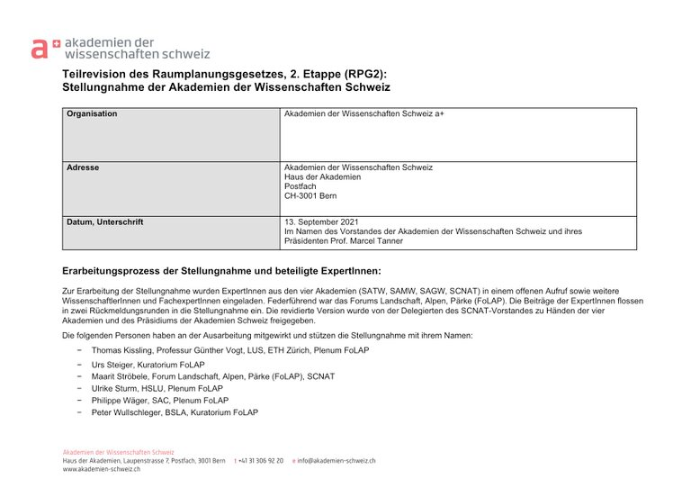 | | | Prise de position du FoLAP : Deuxième étape de la révision de la loi sur l'aménagement du territoire | |
